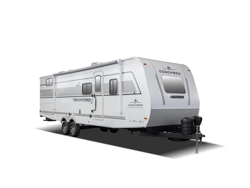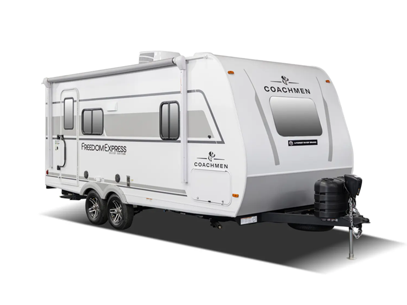 The Freedom Express Select travel trailers by Coachmen are the affordable choice for ultra-lite luxury. These models feature Coachmen's signature two-step vacuum bonded and pinch rolled sidewalls with Azdel interior and exterior and popular features to bring you a lightweight trailer for all your camping trips!