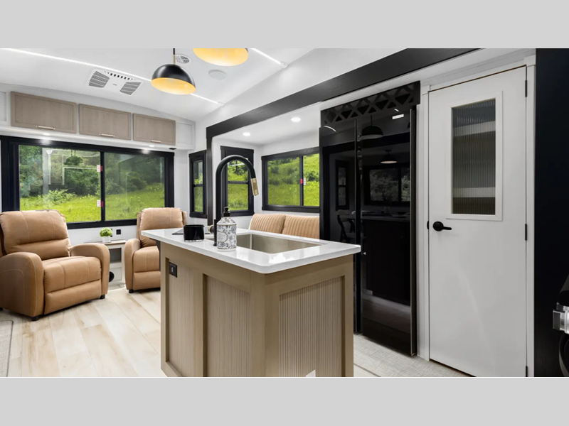 Sleeps 4 Slides 3 Length 36 ft 1 in Ext Width 8 ft Ext Height 13 ft 3 in Int Height 0 ft Hitch Weight 2025 lbs Dry Weight 11184 lbs Cargo Capacity 2841 lbs Fresh Water Capacity 57 gals Grey Water Capacity 60 gals Black Water Capacity 30 gals Available Beds Custom King Refrigerator Type 12V Refrigerator Size 16 cu ft Cooktop Burners 3 Number of Awnings 1 Water Heater Type On Demand Tankless AC BTU 33000 btu TV Info LR 50" LED Smart TV Awning Info Electric with LED Lights Axle Count 2 Washer/Dryer Available Yes Shower Type Standard Similar Floorplans
