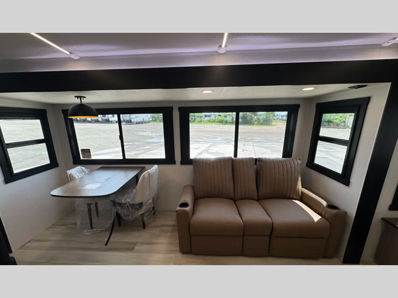 Sleeps 4 Slides 2 Length 35 ft Ext Width 8 ft Ext Height 11 ft 5 in Hitch Weight 915 lbs Dry Weight 8433 lbs Cargo Capacity 1282 lbs Fresh Water Capacity 45 gals Grey Water Capacity 60 gals Black Water Capacity 30 gals Available Beds Queen Refrigerator Type 12V Refrigerator Size 10 cu ft Cooktop Burners 3 Number of Awnings 1 Water Heater Type On Demand Tankless AC BTU 31500 btu TV Info 50" LED Smart TV Awning Info with LED Lights Axle Count 2 Shower Type Standard Electrical Service 50 amp Similar Floorplans