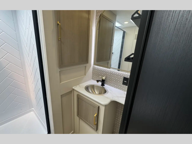 Sleeps 2 Slides 2 Length 31 ft 8 in Ext Width 8 ft Ext Height 11 ft 6 in Hitch Weight 1020 lbs Dry Weight 7553 lbs Cargo Capacity 2257 lbs Fresh Water Capacity 45 gals Grey Water Capacity 60 gals Black Water Capacity 30 gals Available Beds Custom King Refrigerator Type 12V Refrigerator Size 10 cu ft Cooktop Burners 3 Number of Awnings 1 Water Heater Type On Demand Tankless AC BTU 18000 btu TV Info LR 40" LED Smart TV Awning Info 22' with LED Lights Axle Count 2 Washer/Dryer Available Yes Shower Type Walk-In Shower Electrical Service 50 amp Similar Floorplans