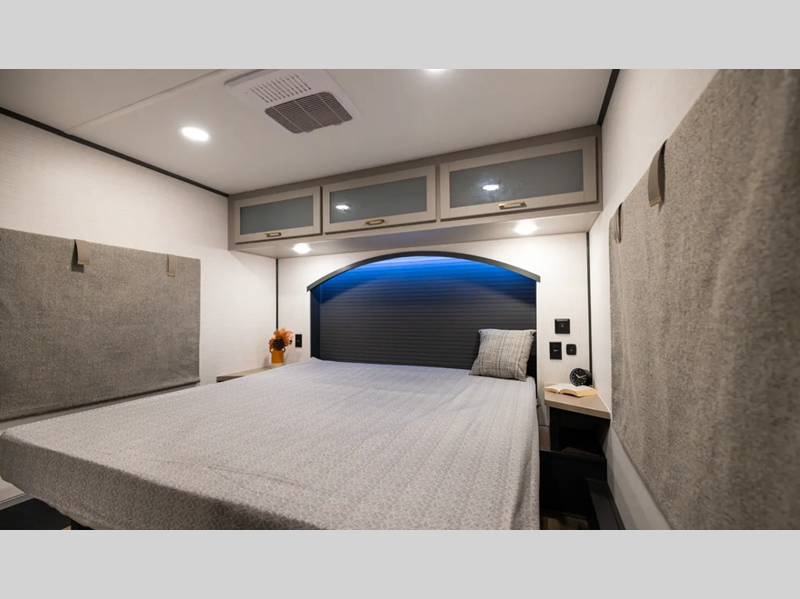 There is a rear beaver tail frame, a docking station, and a magnetic screen wall so you can let the fresh air in without letting the bugs in. You will feel right at home with decorative kitchen backsplash and LED lights, and there is a tankless water heater to provide endless hot showers after trail riding. The Alumifoil insulated enclosed underbelly will help extend your camping season, and the patio railing kit will let you enjoy more time outdoors once the toys are unloaded.