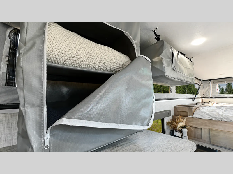 Sleeps 3 Length 14 ft 10 in Ext Width 7 ft 2 in Ext Height 6 ft Exterior Color White, Grey Dry Weight 1826 lbs Fresh Water Capacity 15 gals Black Water Capacity 7 gals Furnace BTU 20000 btu Available Beds Queen Refrigerator Type 12V Refrigerator Size 3.3 cu ft Cooktop Burners 2 Floor Length 8 ft 6 in LP Tank Capacity 20 lbs Truck Bed Size Long Number of LP Tanks 1 Body Style Pop-Up -