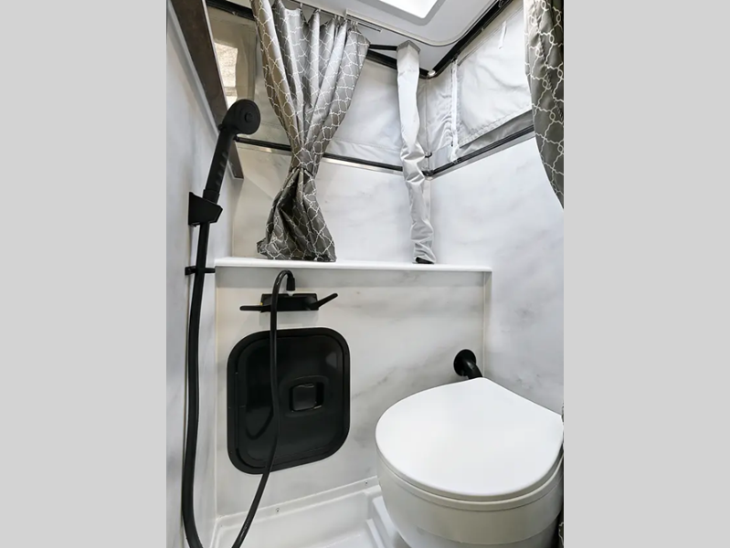 Sleeps 3 Length 14 ft 4 in Ext Width 7 ft 2 in Ext Height 6 ft Exterior Color White, Grey Dry Weight 1939 lbs Fresh Water Capacity 15 gals Black Water Capacity 7 gals Furnace BTU 20000 btu Available Beds Queen Refrigerator Type 12V Refrigerator Size 3.3 cu ft Cooktop Burners 2 Floor Length 9 ft 6 in Center of Gravity Front 45 in LP Tank Capacity 30 lbs Truck Bed Size Long Number of LP Tanks 1 Body Style Pop-Up Shower Type Wet/Bath Shower Similar Floorplans